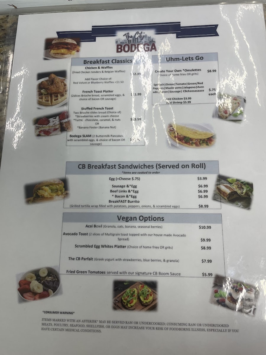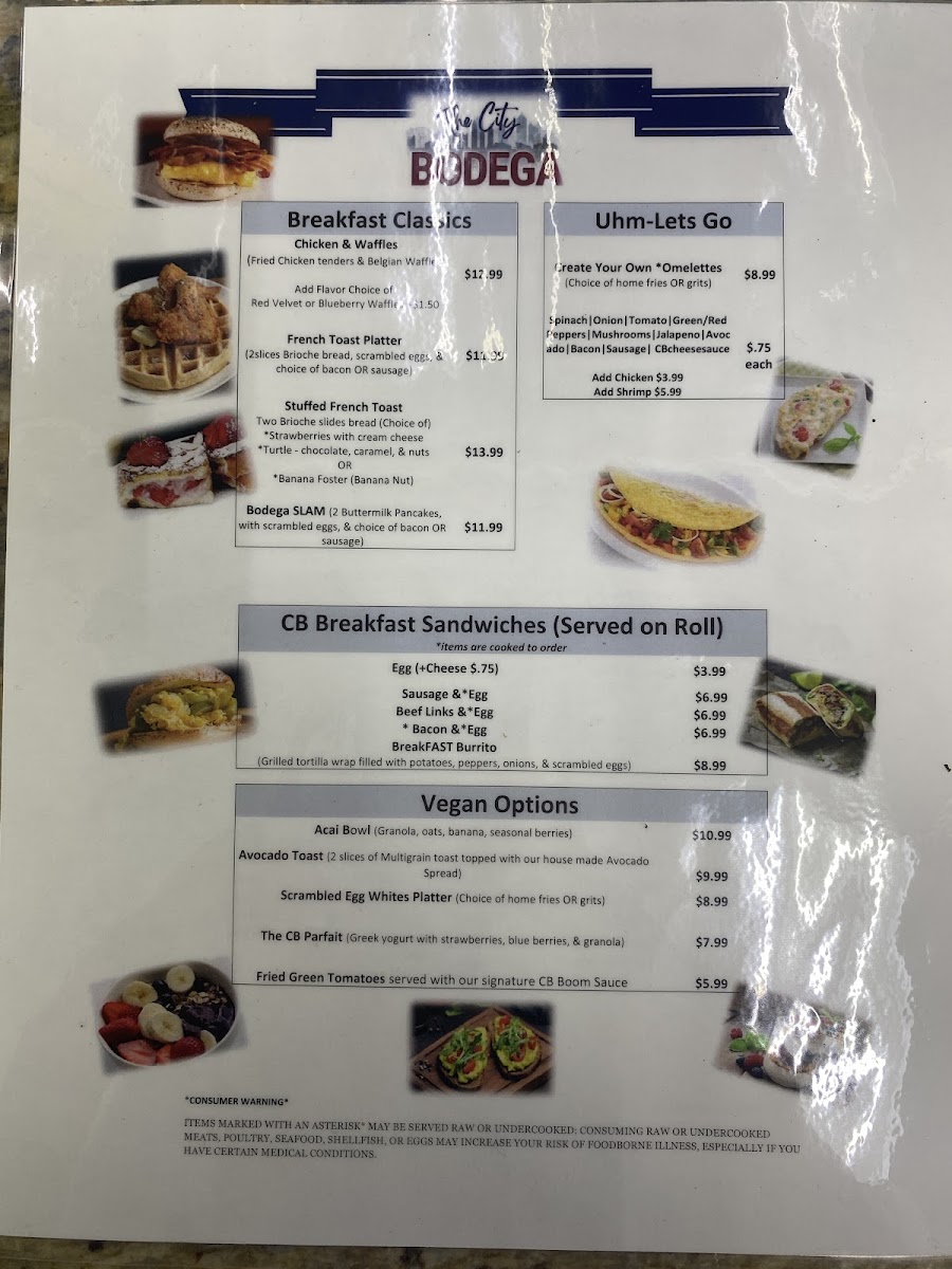Finally, don’t miss out on the CB Breakfast Sandwiches served on rolls, including the delicious combinations like Egg, Ham & Egg, Turkey & Egg, and the Sausage & Egg. Whether you're here for a quick bite or a leisurely meal, the menu at The City Bodega Cafe guarantees there's something for everyone.