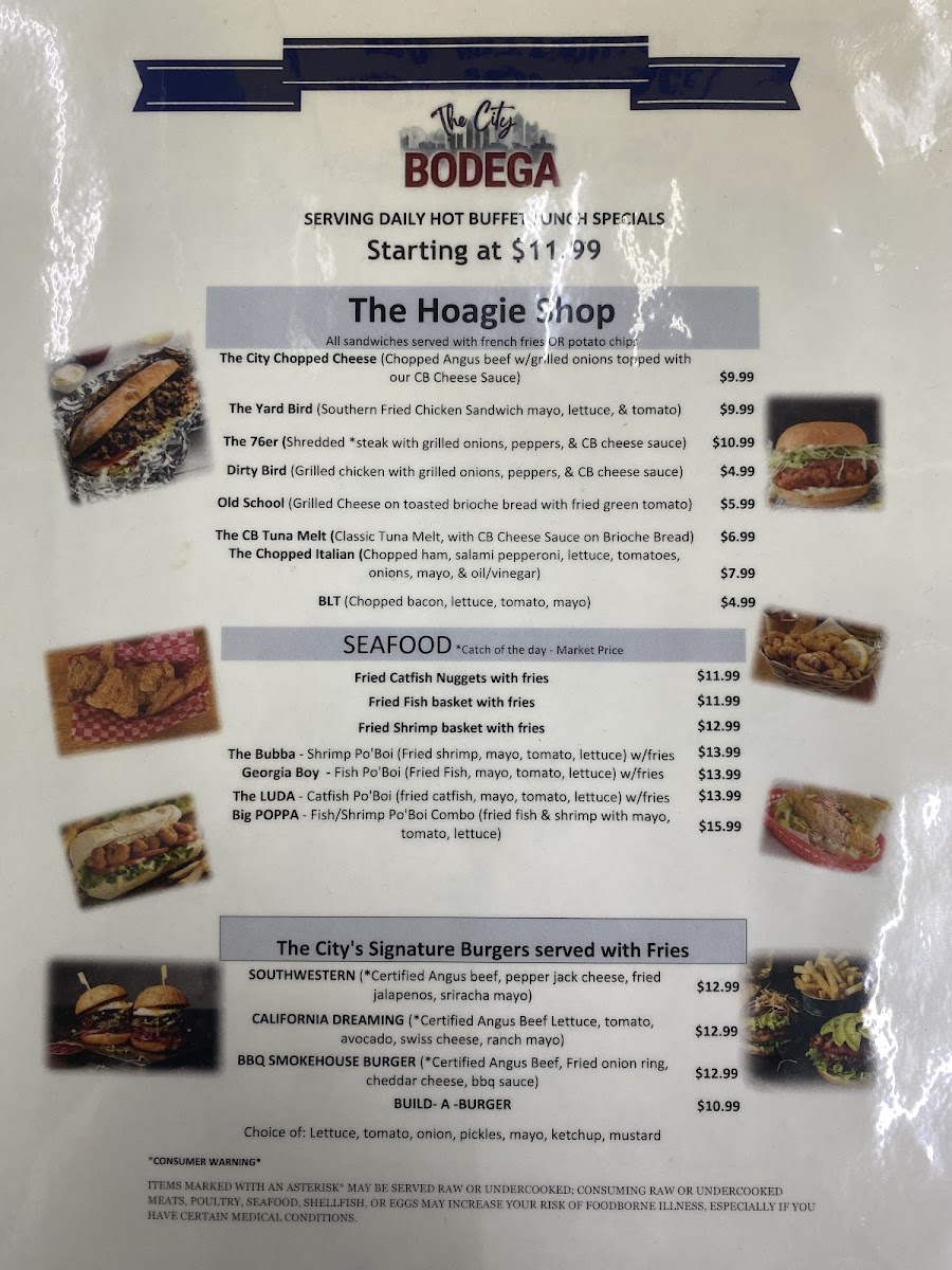 The menu at The City Bodega Cafe offers a delightful array of options catering to various tastes and preferences, from hearty breakfasts to flavorful lunch and dinner choices. For those craving a delicious sandwich, the Hoagie Shop serves up options like the Bacon Ranch Chicken Wrap, Chopped Smoked Turkey Club, and the classic B.L.T. Chopped Cheese - all served with crispy fries. If you're looking for something lighter, try the Chopped Italian or an Open Item for a personalized touch.